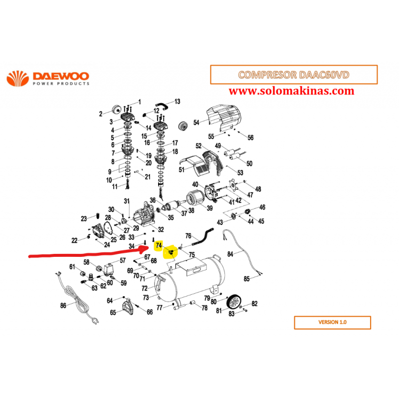 DAAC60VD VALVULA ANTIRETORNO COMPRESOR DAAC60VD PIEZA Nº74