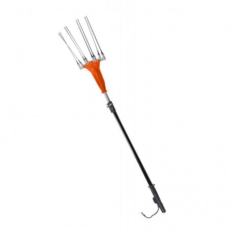 VAREADORA ALIMENTADA A BATERÍA Y DESTINADA A LA RECOLECCIÓN DE LA OLIVA. ESTA CAE DEL ÁRBOL GRACIAS A LAS VIBRACIONES QUE LAS BARRAS DE CARBONO FIJADAS EN EL PEINE TRANSMITEN A LAS RAMAS. EL PEINE PRODUCE UN MOVIMIENTO OSCILANTE CONTRAPUESTO, QUE GARANTIZA EL MEJOR RENDIMIENTO.